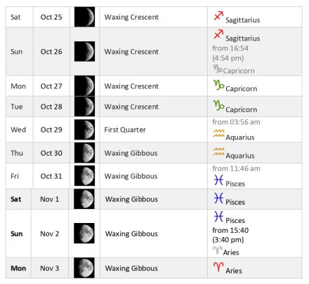 سپس در ۳۰ اکتبر ماه وارد Waxing Gibbous میشود. زمان پالایش، بازنگری، و درک جمعی. آگاهی دلو شما را به مشاهده بیطرف دعوت میکند. همچنین نیازی درونی در شما فعال میشود برای رها کردن چیزی.